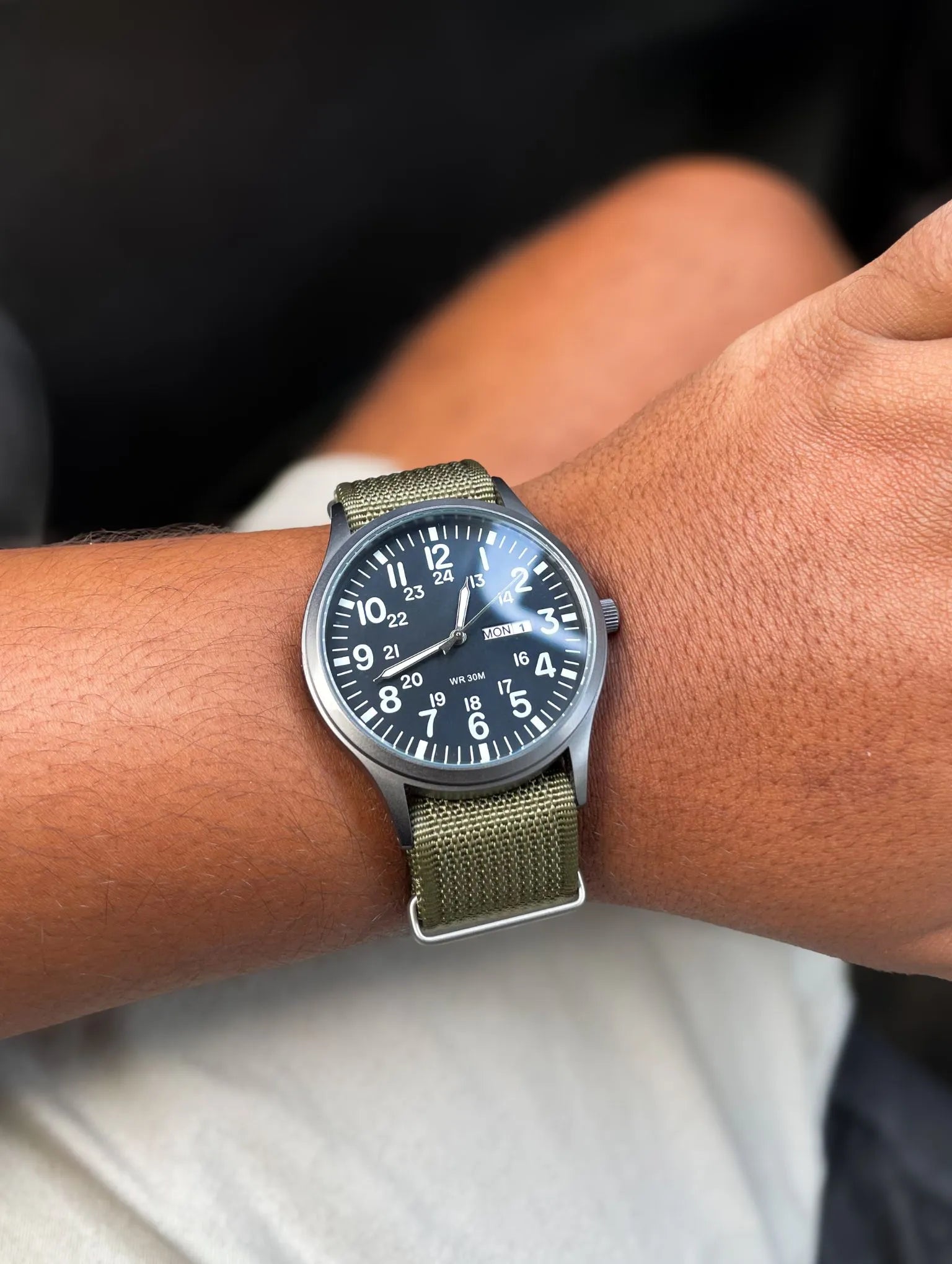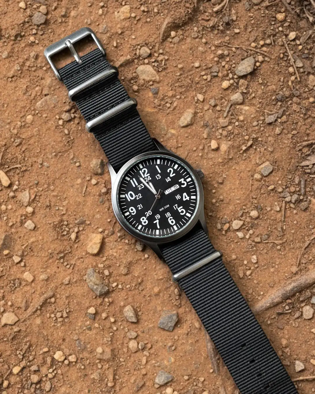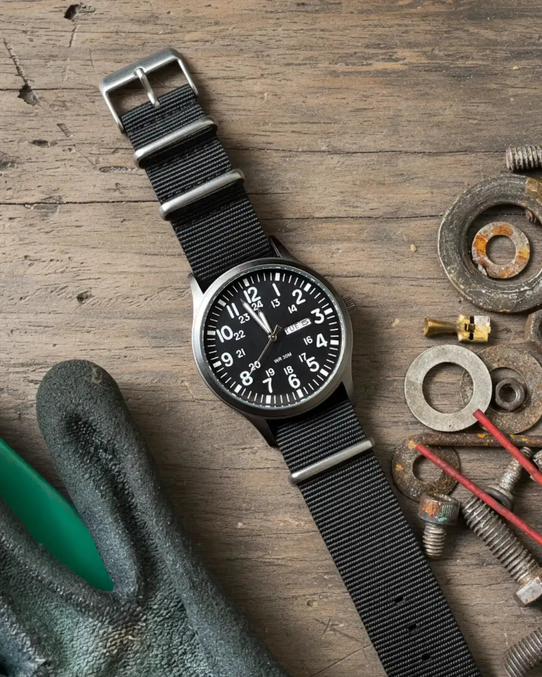Sua pulseira NATO fabricada em Nylon Tático entrelaçado garante leveza e resistência para qualquer rotina, do escritório à aventura.